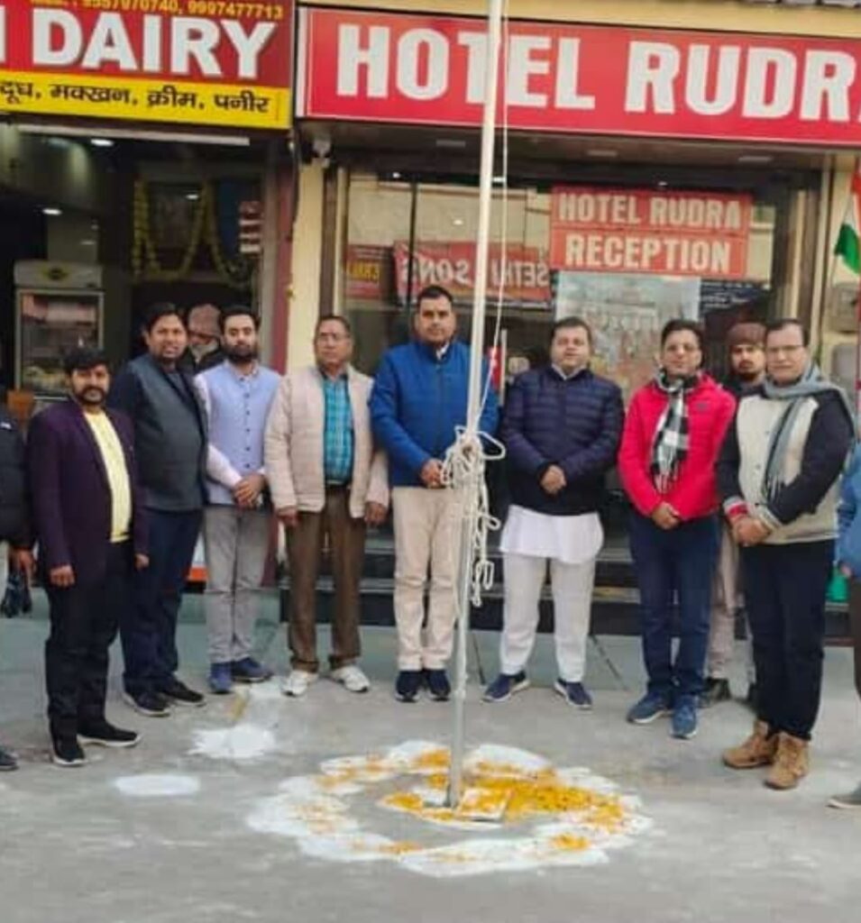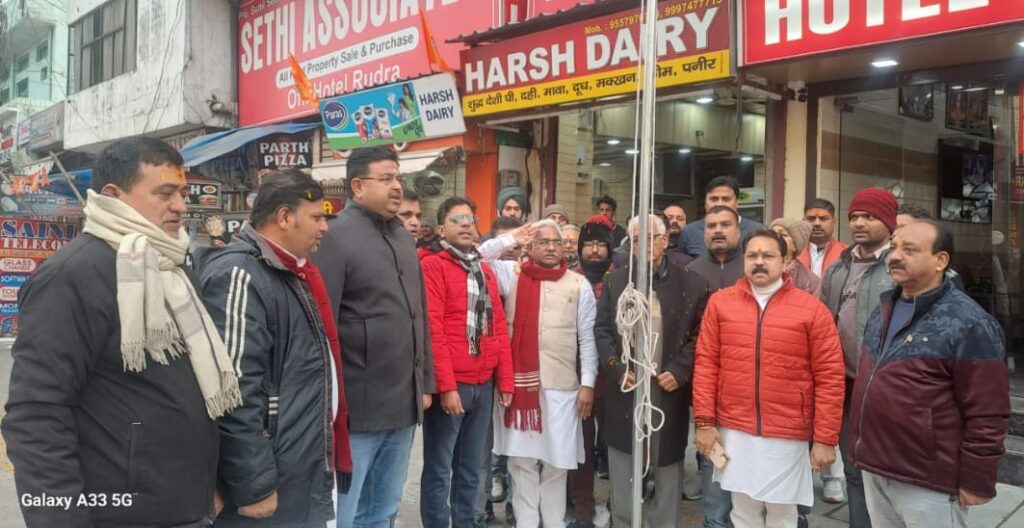 महानगर व्यापार मंडल जिलाध्यक्ष सुनील सेठी के संयोजन में खड़खड़ी महानगर कार्यालय पर मुख्य अतिथि हरिद्वार विधायक मदन कौशिक ने झंडा फहरा कर सभी देशवासियों को गणतंत्र दिवस की शुभकामनाए दी। जिलाध्यक्ष सुनील सेठी एवं वरिष्ट समाजसेवी महानगर मुख्य संरक्षक डॉक्टर श्याम पूरी ने हरिद्वार विधायक मदन कौशिक के साथ ध्वजारोहण किया। इस अवसर पर मदन कौशिक ने कहा कि 26 जनवरी वो ऐतिहासिक दिन है जो हर भारतवासी के लिए गौरवशाली दिवस है। इस दिन हमे भारत माता को प्रणाम करने के साथ साथ देश पर अपने प्राणों को न्योछावर करने वाले बलिदानी अमर सैनिकों को नमन कर उन्हे श्रद्धांजलि देने का अवसर होता है। हमारे देश की आजादी से लेकर संविधान लागू होने तक अमर शहीद आज भी हमारे लिए प्रेरणास्रोत है आज उन्ही की बदौलत हम इस पर्व को धूमधाम से मना पा रहे है। जिलाध्यक्ष सुनील सेठी ने इस अवसर पर सभी देश वासियों प्रदेश वासियों हरिद्वार की जनता को गणतंत्र दिवस की शुभकामनाए देते हुए कामना कि हमारा देश विकसित हो नए भारत का उदय 22 जनवरी को हो चुका है इस बार की 26 जनवरी भी 500 साल बाद इतिहास के रूप में याद रखी जायेगी। अनिरुद्ध भाटी ने सभी को शुभकामनाएं देते हुए कहा कि देश के गौरवशाली पल और हमारे आजाद भारत में रामयुग की शुरुवात भी 2024 से हुई है इसलिए ये 26 जनवरी हमारे आजाद भारत के लिए एक नई उमंग नए भारत उदय के सपने के साथ सभी देश वादियों की खुशहाली लेकर आ रही है। इस अवसर पर मुख्य संरक्षक डाक्टर श्याम पूरी, जिला उपाध्यक्ष विकास तिवारी, भाजपा नेता विशाल गर्ग,मंडल अध्यक्ष तरुण नैयर,राजकुमार अरोड़ा,विनीत जोली,दीपांशु विधार्थी, समाजसेवी प्रमोद गिरी,विदित शर्मा, आकाश भाटी,जिला उपाध्यक्ष विनेश शर्मा,खड़खड़ेवर अध्यक्ष भूदेव शर्मा,अर्चित चौहान, रवि चोहान, आशीष जैन,आकाश पूरी, विकल राठी, मुकेश पूरी,पवन पांडे,देव पांडे,निशा मल्होत्रा,राकेश सिंह, गणेश शर्मा, संजू प्रजापति, गौरव शर्मा, बंटी प्रकाश, नंदलाल, नीरज पाल,मनोज चौहान,अनिल कुमार, कुलदीप सिंह, धर्मपाल प्रजापति एवं कई सामाजिक गण उपस्थित रहे।